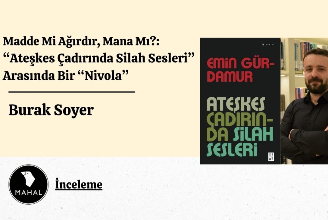 Emin Gürdamur, Ateşkes Çadırında Silah Sesleri’nde, nivolanın tüm meziyetlerini sonuna kadar kullanarak, bu dünyanın “Madde mi ağırdır, mana mı?” sorusundan mürekkep ezeli kapışmasını taşradan kente sarkan, geçmişten bugüne ulanan bir hikâye etrafında kurallarını kendi koyduğu bir anlatı sunuyor. Devamlı diken üstünde oturttuğu okuru, şirazesi kaygan bir atmosferde, müphem bir sonucun ortaya çıkmasını bekleterek son sayfaya kadar tabiri caizse esir alan Gürdamur, nihayetinde yukarıdaki o ebedi soruyu bomba gibi kucağımıza bırakıp arkasına bile bakmadan kaçıyor. Belki de orada duruyor. Kim bilir? Sonuçta bu bir nivola…