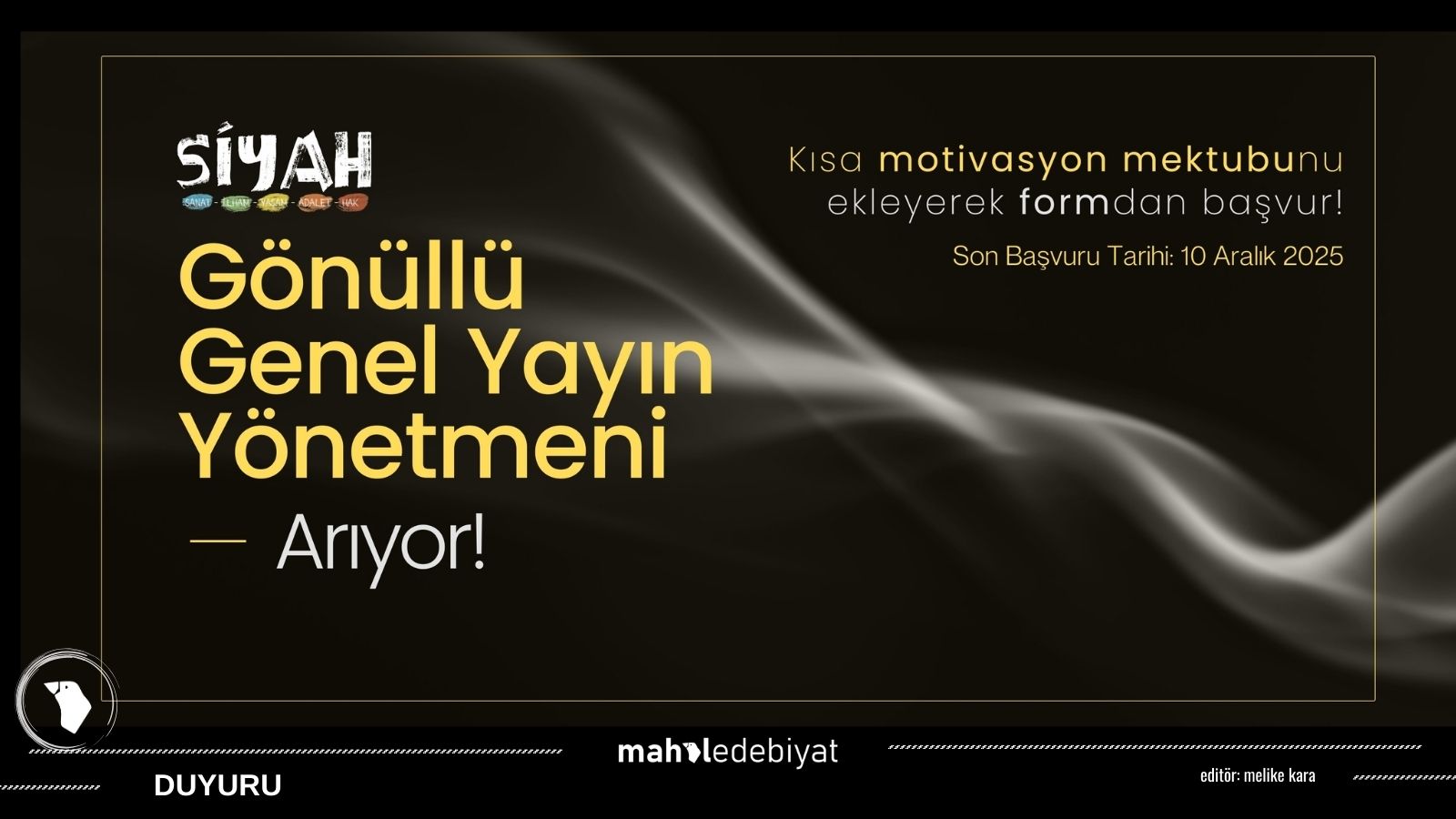 - SİYAH E-Dergi Gönüllü Genel Yayın Yönetmeni Arıyor - 4 Aralık 2025