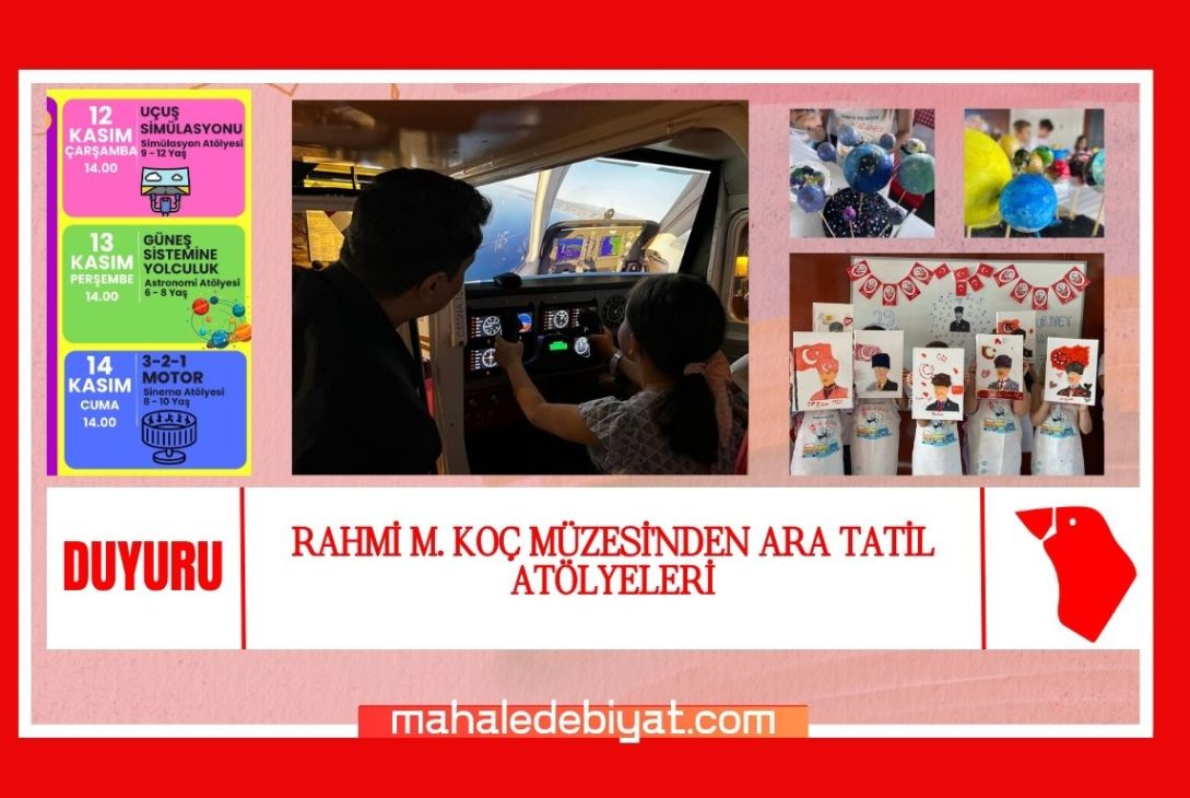 Rahmi M. Koç Müzesi, ara tatilde çocuklar için birbirinden eğlenceli etkinlikler düzenliyor. Çocuklar, düzenlenen atölye çalışmalarıyla Atatürk’ü anacak, uçuş simülasyonunda pilot olacak, güneş sisteminde yolculuğa çıkacak.